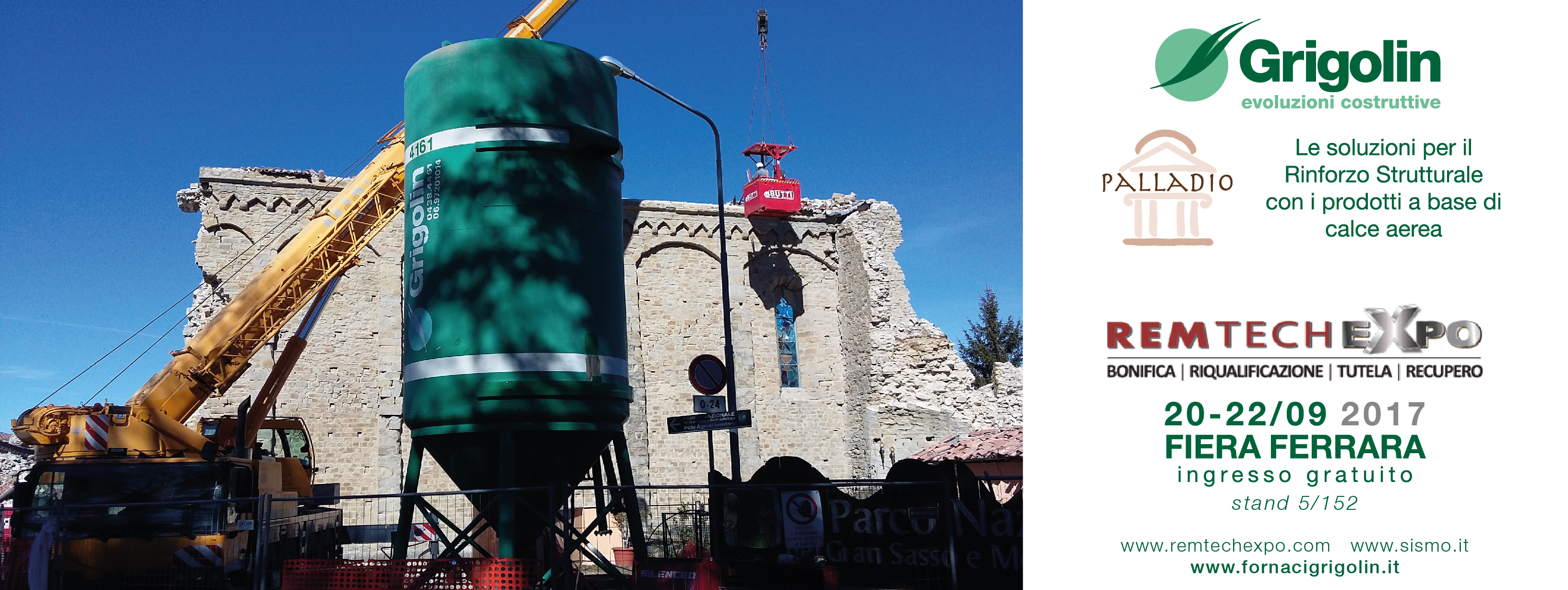 Fornaci Calce Grigolin presenterà le soluzioni per il Rinforzo Strutturale con i prodotti Palladio a base di calce aerea e terrà un convegno gratuito dal titolo "FORNACI CALCE GRIGOLIN NEL MONDO DEL RIPRISTINO STRUTTURALE" il giorno 22 settembre 2017, dove saranno presentati dei casi studio di interventi di ripristino strutturale su edifici vincolati, realizzati con i prodotti Palladio: