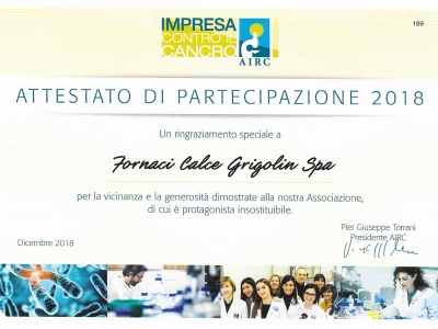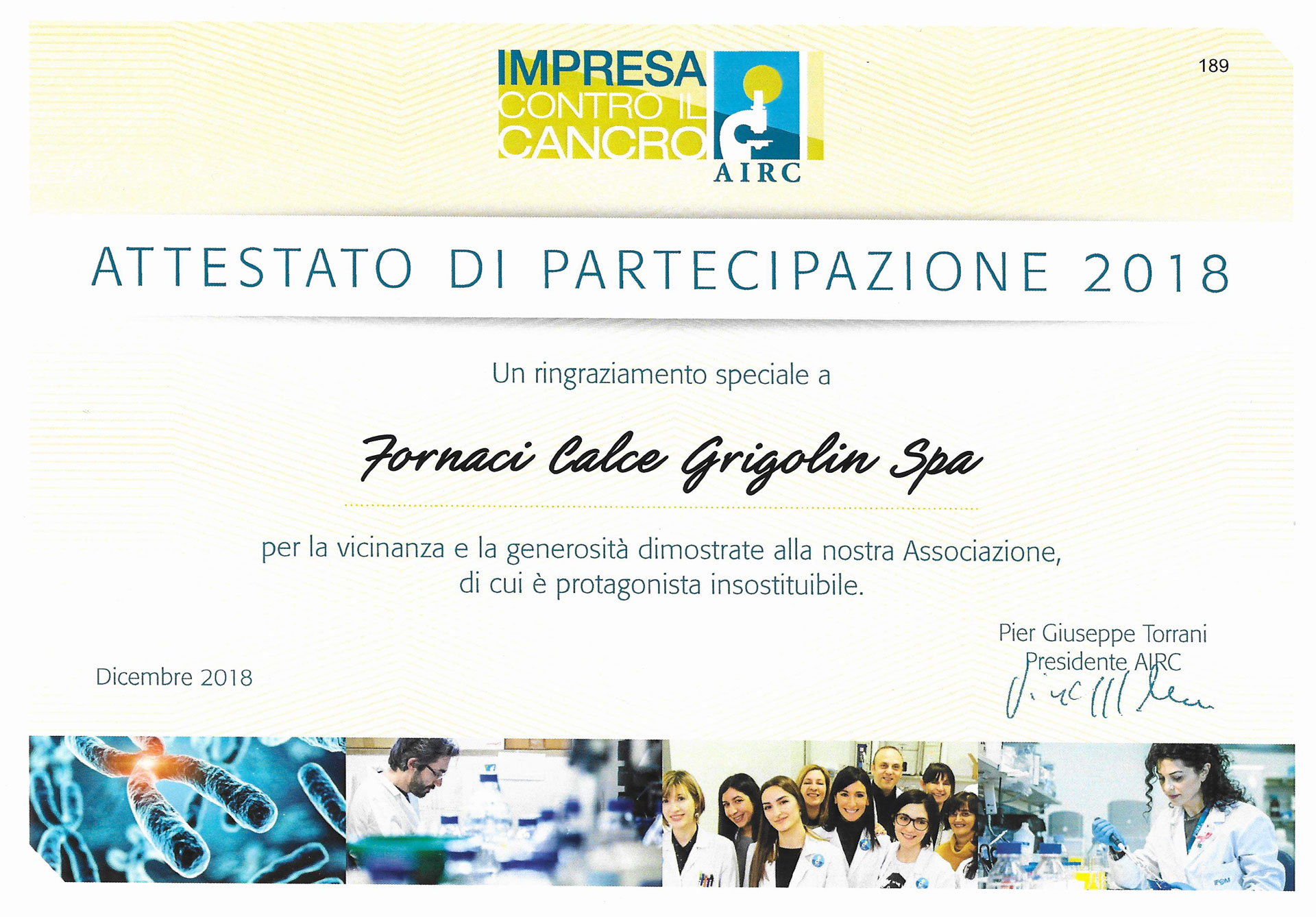 Fornaci Calce Grigolin anche nel 2019 donerà l’1% del fatturato dei prodotti MALTA UNICA, INTONACO PRATICO e RASANTE BIANCOGESSO ad AIRC, per continuare insieme il percorso intrapreso due anni fa in questa impresa.