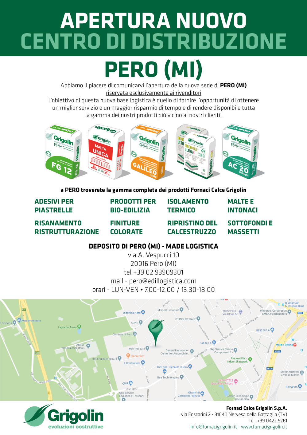 12/07/2019 - Abbiamo il piacere di comunicarvi l'apertura della nuova sede di PERO - MILANO.