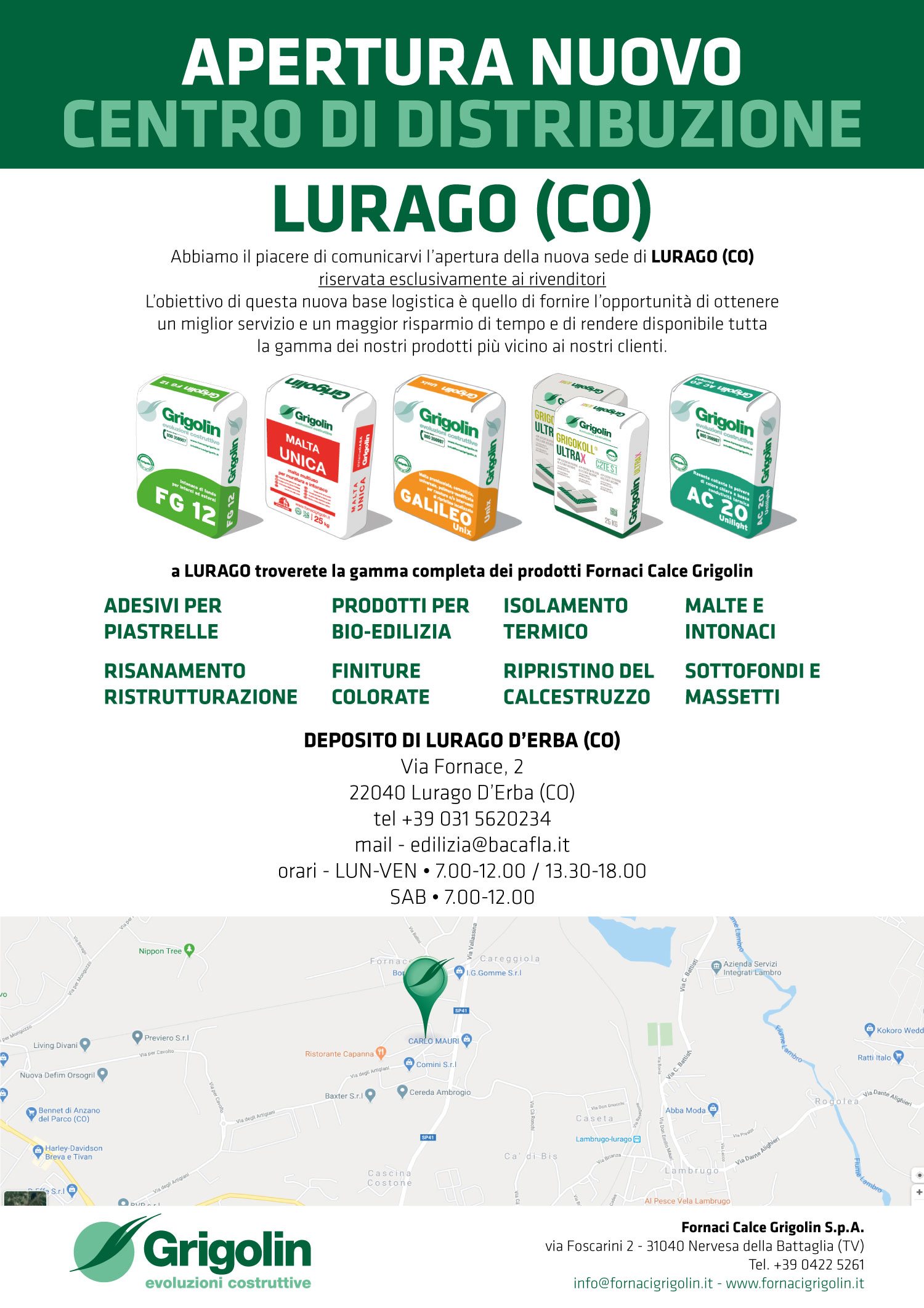 02/03/2020 - Abbiamo il piacere di comunicarvi l'apertura della nuova sede di LURAGO D'ERBA - COMO.
