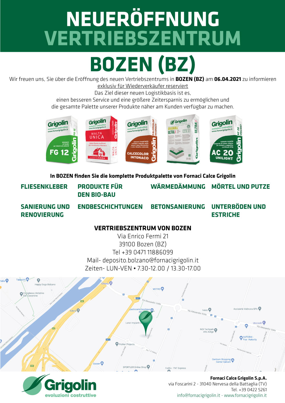 29/03/2021 - Wir freuen uns, Sie über die Eröffnung des neuen Vertriebszentrums in BOZEN (BZ) am 06.04.2021